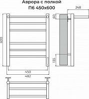 Аврора с/п П8 500х800 электро КС 9005 матовый ( new встроен диммер) Полотенцесушитель TERMINUS