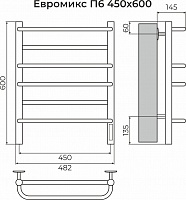 Евромикс П6 450х600 электро КС ЧЕРНЫЙ МУАР ( new встроен диммер) Полотенцесушитель TERMINUS